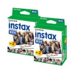 - El doble-pack de Fujifilm Instax Film Wide instantáneo contiene 20 películas instantánea en color. Son compatibles con las Cámaras Fujifilm Instax 200 y 210. Esta película presenta una reproducción de colores vivos con tonos naturales de la piel cuando se usa bajo la luz del día (5500K) o condiciones de iluminación de flash electrónico. Una estructura de grano refinado proporciona una alta nitidez y claridad de imagen, así como un ISO 800 velocidad de la película versátil para su uso con una amplia variedad de temas. Cada hoja de película de 86 x 108 mm produce un área de imagen 62 x 99 mm brillante que está rodeado por un borde blanco con una zona de anotación debajo de la imagen.